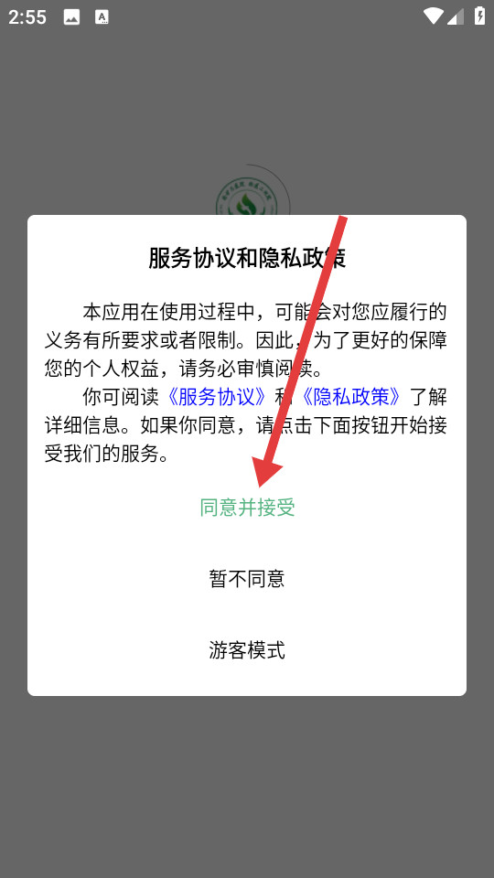 2、首次打开APP会弹出用户协议及隐私政策界面,需仔细阅读后点击同意才能继续使用APP,这一步是为了确保用户了解并同意平台使用个人信息的规则。