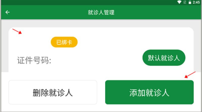 3、进去之后,会发现已经有一个就诊人信息了,点击右下角的添加就诊人。