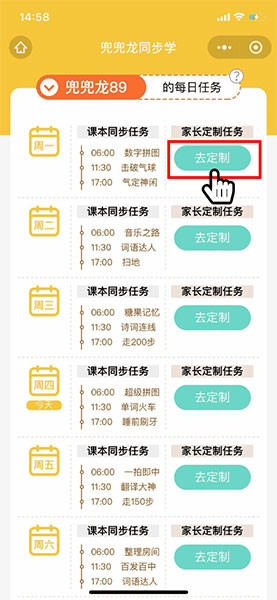 支持家长定制每周任务,每天定时推送,根据孩子情况定向锻炼。