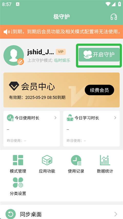 1、进入软件内登录后,点击开启守护。