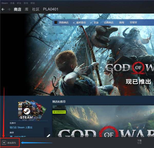 1、首先我们打开Steam客户端,一定要是客户端才行,不然无法激活,而且游戏没有这个也玩不了啊。打开之后点击左下角的“添加游戏”,这是就能看到“在Steam上激活产品”的按钮。