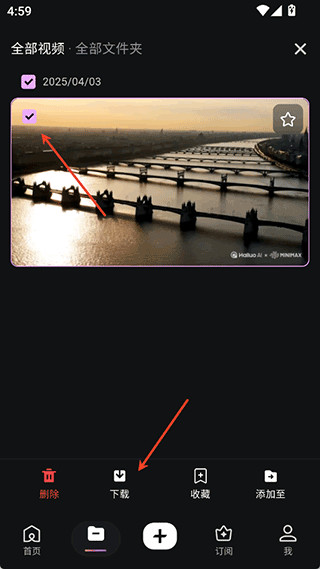 2、接着就会在底部出现下载按钮,用户在视频浏览界面左上角继续勾选下,然后再点击这个下载按钮