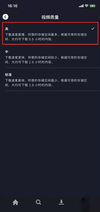 11、在页面中可选三种画质,这里选择「高」来保持下载剧集是高画质。