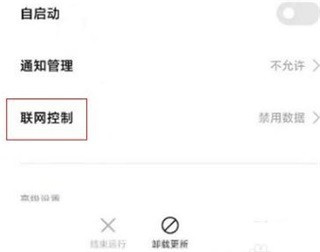 5、在浏览器设置界面,点击联网控制进入。