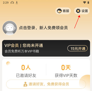 打开应用,在“我的”界面点击右上角齿轮图标。