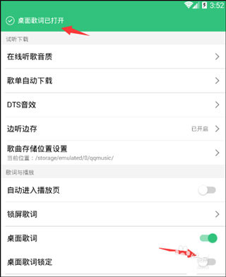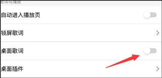 3、进入到设置页面之后,找到,且点击桌面歌词右边的标志,以此来打开桌面歌词。