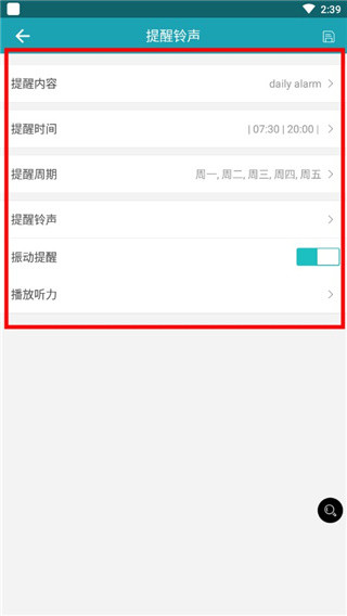 4、可以选择提醒铃声、时间、周期等。如图所示:
