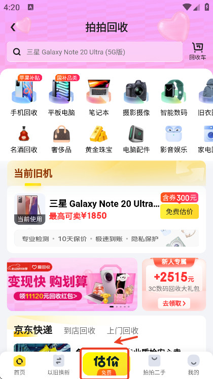 4、玩家可以点击“估价”,免费让官方预估自己的二手产品出售价格