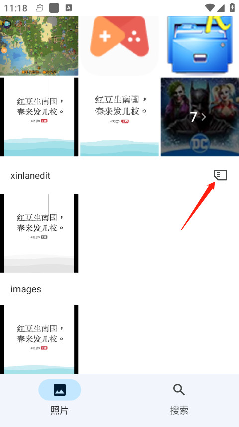 1、在手机上安装该软件打开,进入到照片界面,可点集文件夹标志。