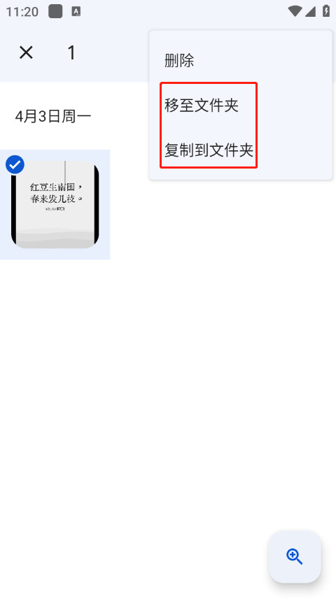 3、勾选上图片,还可以进行移至文件夹和复制到文件夹操作。