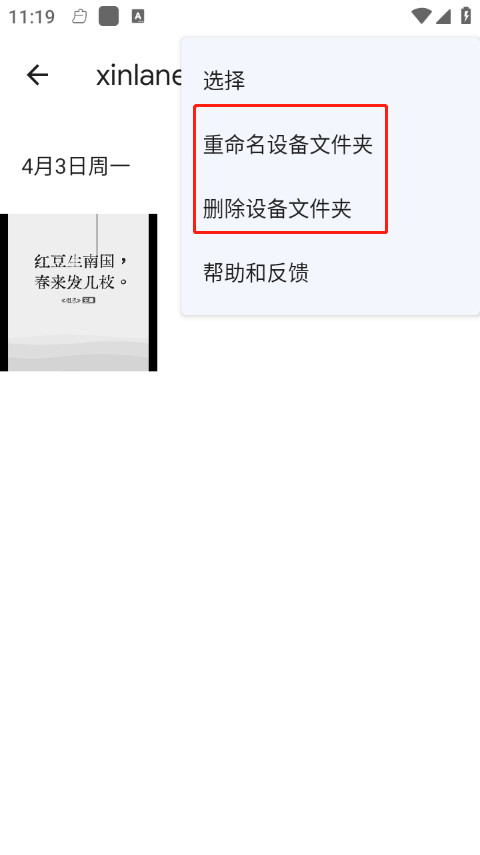 2、在这里可给图片所在的文件夹重命名或者删除设备文件夹。