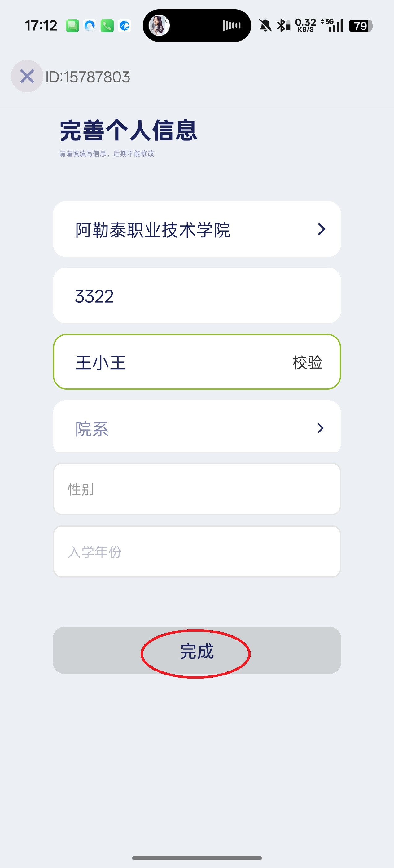 4、随后继续完善所有信息,再点击屏幕下方的“完成”。