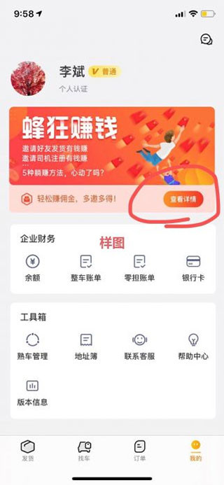 2、订单功能,可以随时查看相应的订单信息,了解司机运输情况。