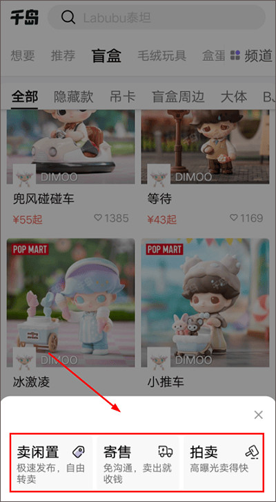 ·点击图标后,即可出现【卖闲置】【寄售】【拍卖】选项;