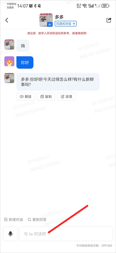 4、点击它就会进入到对话界面,然后就可以在下方对话框中输入你的内容并与数字人进行对话啦