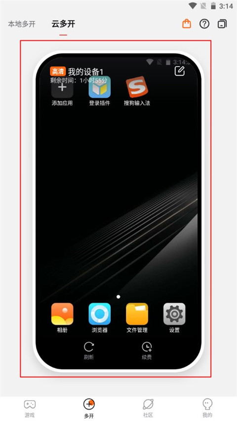 4、点击应用图标即可进入云端模拟器,完成多开启动。