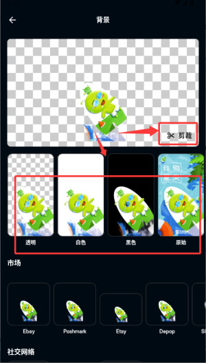 3、可更换透明或白色等背景样式,或进行剪裁操作。