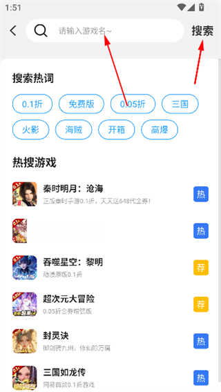 2、在搜索框中输入你想找的游戏名称然后点击搜索