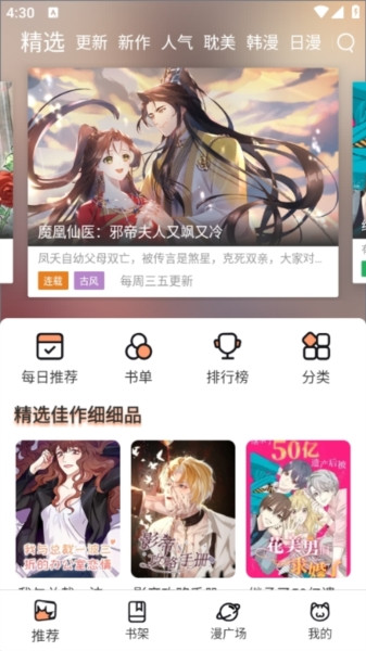 3、在首页精选中,我们就可以看到最近比较热门的漫画内容了。