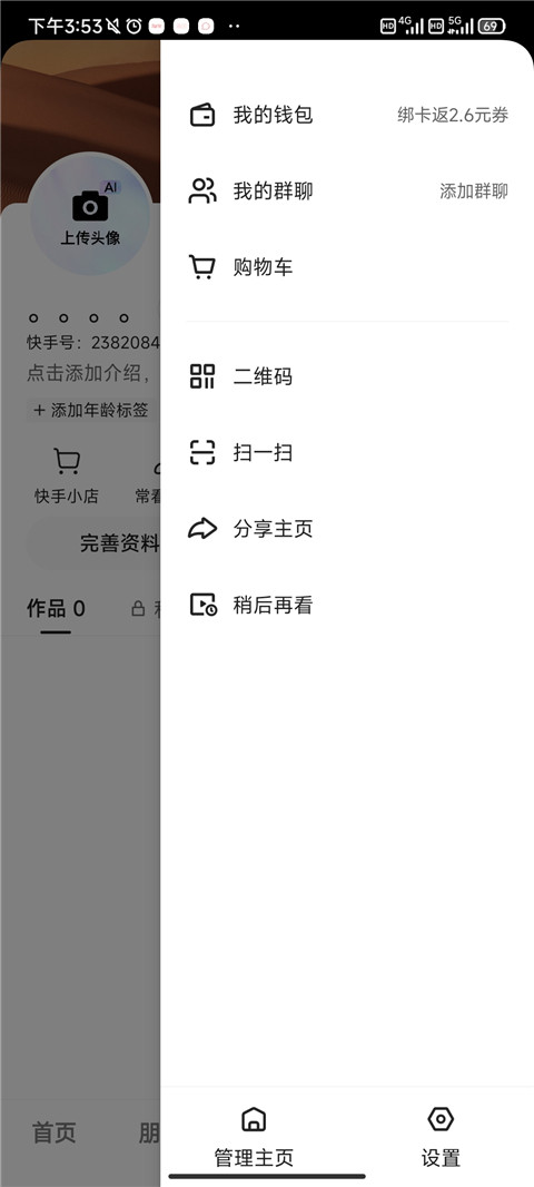 点击打开界面中的个人头像,进入个人主页。