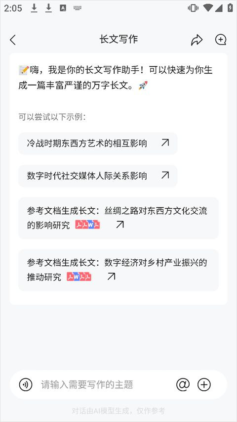 2、在打开的新界面下在底部输入框中输入你想要写作的主题。