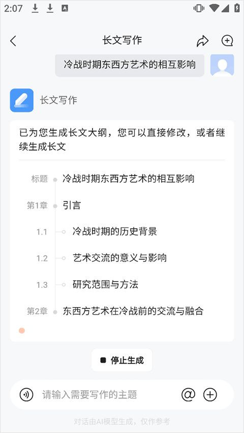 4、可以继续等待大纲生成,或者停止后直接生成长文。