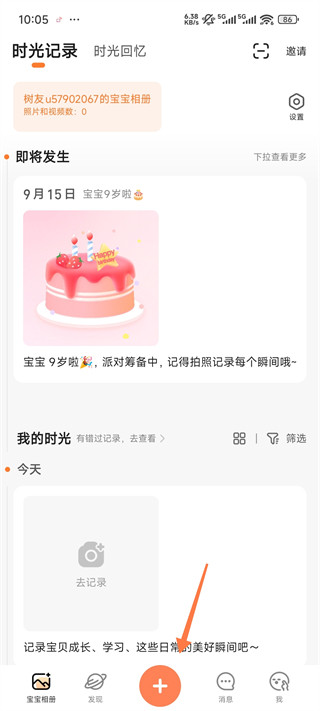 1.打开并登陆宝宝树小时光,首页上面有一个相机的图标,点击此图标可以上传视频。