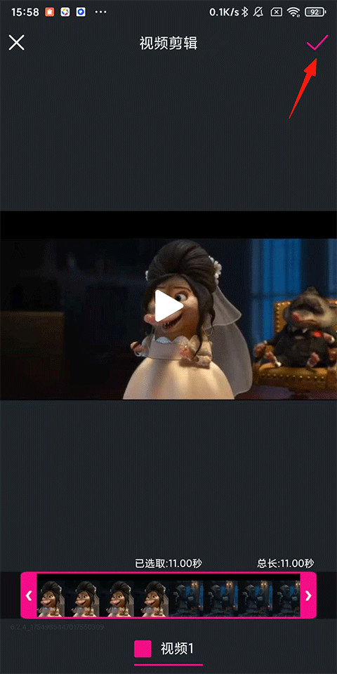 3、从本地导入需要去水印的视频素材,进行裁剪后点击右上角的【✓】完成导入;