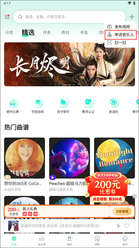 1.虫虫钢琴谱软件曲库首页推荐,每天为你推荐最新最热曲谱!
