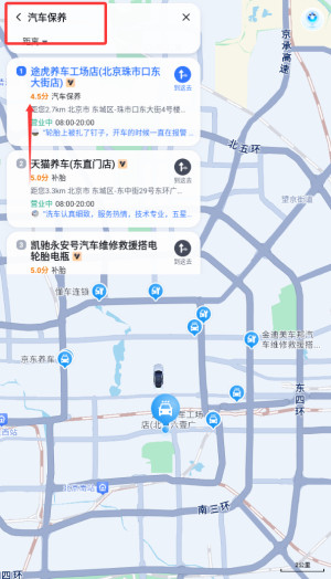 3、通过汽车服务检索可查找周边车辆保养网点,包含4S店与连锁维修店的位置及用户评价。