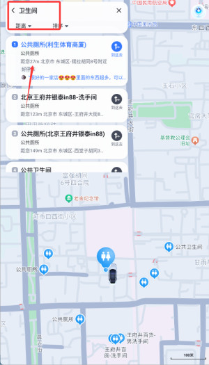 4、使用公共卫生设施查询功能快速定位附近厕所,系统将提供具体距离与当前开放状态。