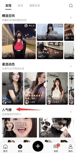 2、点击人气榜可以查看受欢迎的用户有哪些