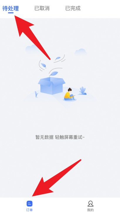 3、查看订单:点击底部“订单”栏,进入后可查看待处理、已取消和已完成的所有订单信息。