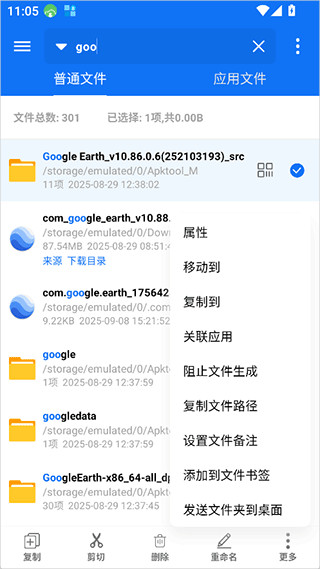 2、在搜索结果中选择文件就可以进行复制、移动等操作