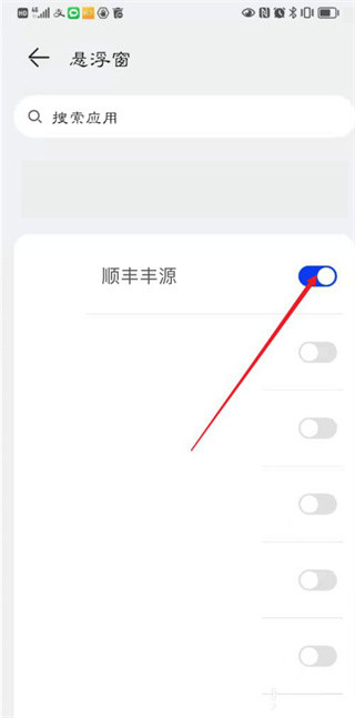 5、在应用列表找到顺丰丰源,也可以使用搜索查找,然后点击右边按钮,打开权限即可。