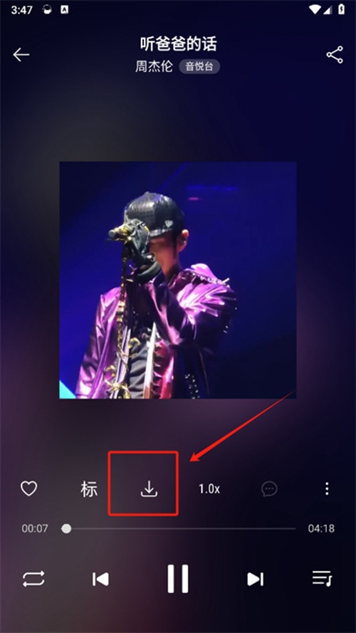 2、然后选择想要下载的音乐,点击进入播放页面,点击下载按钮。