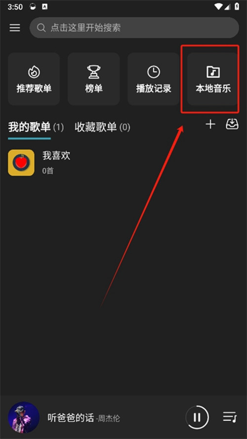 4、下载完成后,回到首页,点击本地音乐。
