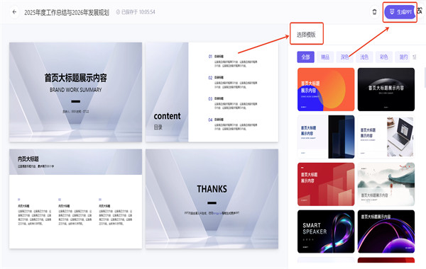 6.选择一个你喜欢的模版后,点击生成ppt。