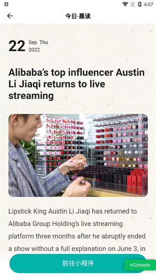 1、下载进入丹尼每日听力app,软件为你提供国外新鲜英文报道以及精选内容;