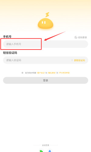 2、在登录界面输入手机号,点击获取验证码按钮。