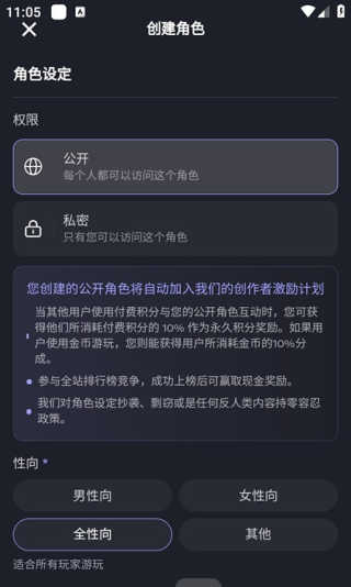 3、角色定制:用户可指定角色擅长领域,如心理学、科技、文学、编程等,还能自由设定角色性别、外貌、服装风格等视觉元素。