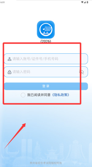 1、首先在手机应用商店搜索贵州招生并下载安装,打开后进入官方认证的登录界面。