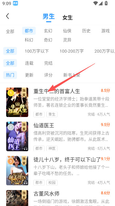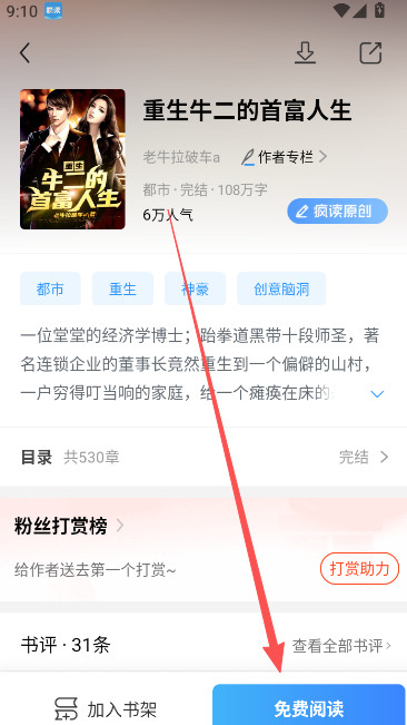 1、在小说阅读分类中,找到自己喜欢的题材点击进入阅读详情界面。