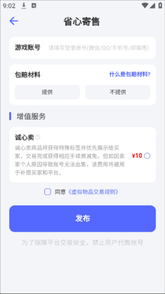 4、在坚定界面玩家们可以自由地坚定游戏账号的价值。