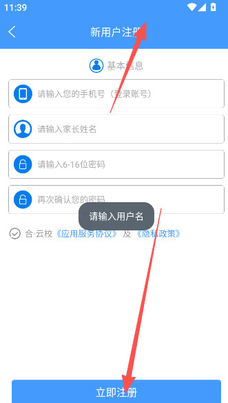 3、输入手机号码、家长姓名以及密码的方式完成创建操作。