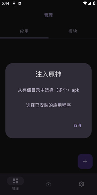 5.接着用户将已下载好的原神模块包注入进去