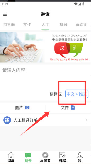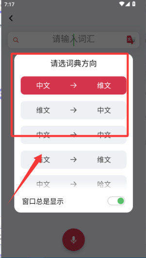 安装最新版本,选择维汉互译,输入文字即可显示即时翻译结果。