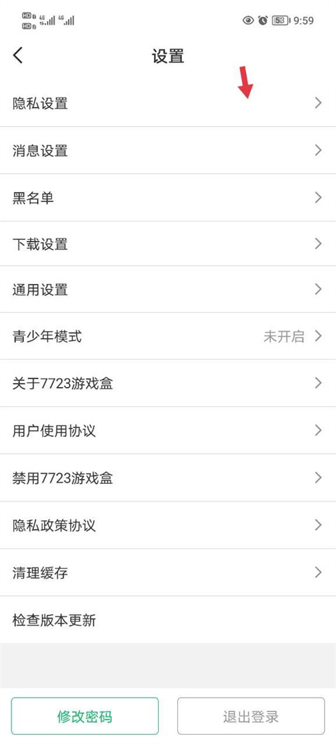 2、在设置界面找到隐私设置进入。