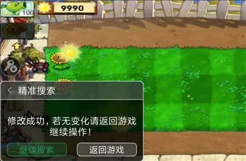 5、输入现在的阳光数值,点击搜索,返回游戏搜集一些阳光。