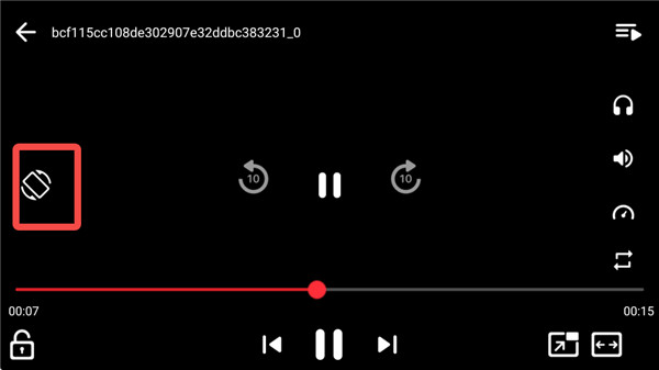 2、进入可以看见目前是横屏播放,且是黑屏状态,点击左侧旋转标识。